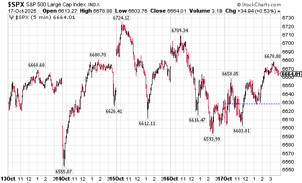 Throughout the week, the index traded in a wide, roughly 150-point range, reflecting a market digesting a complex mix of cross currents - optimism about potential Fed rate cuts on one side, and concern about lofty valuations and uneven growth on the other. This was not a calm, contained range; it was an active one. Several big microtrends played out within the week - directional bursts lasting a few hours - as traders responded to shifting intraday flows, news headlines, and changing expectations.